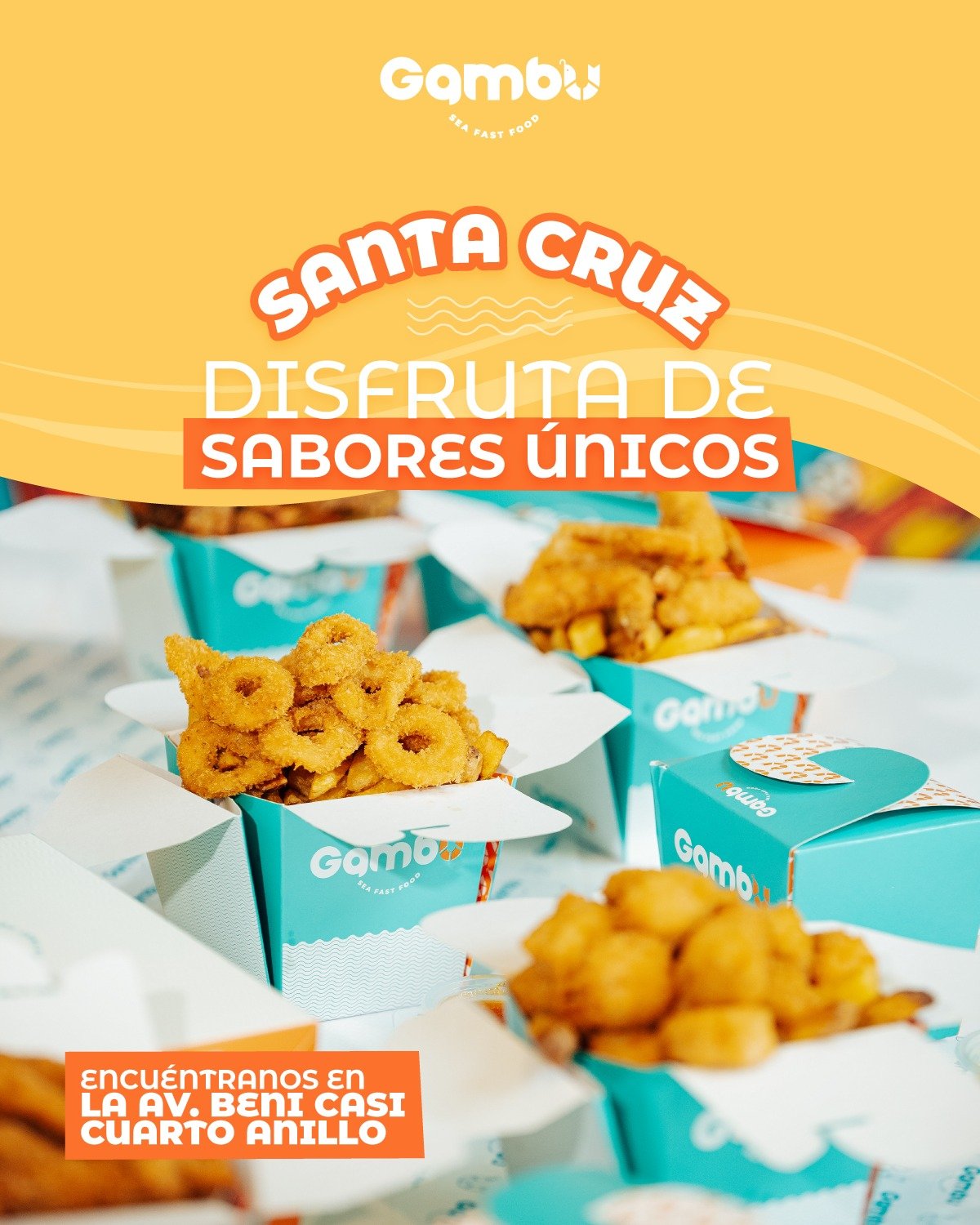¡Bienvenidos a Gambu Sea Fast Food, tu lugar favorito para disfrutar de los mejores sabores del mar en Santa Cruz! Ubicados en Megacenter, en la intersección de 2do Anillo y René Moreno, en la Zona Sur, ofrecemos una experiencia gastronómica rápida y deliciosa con un toque de frescura marina.