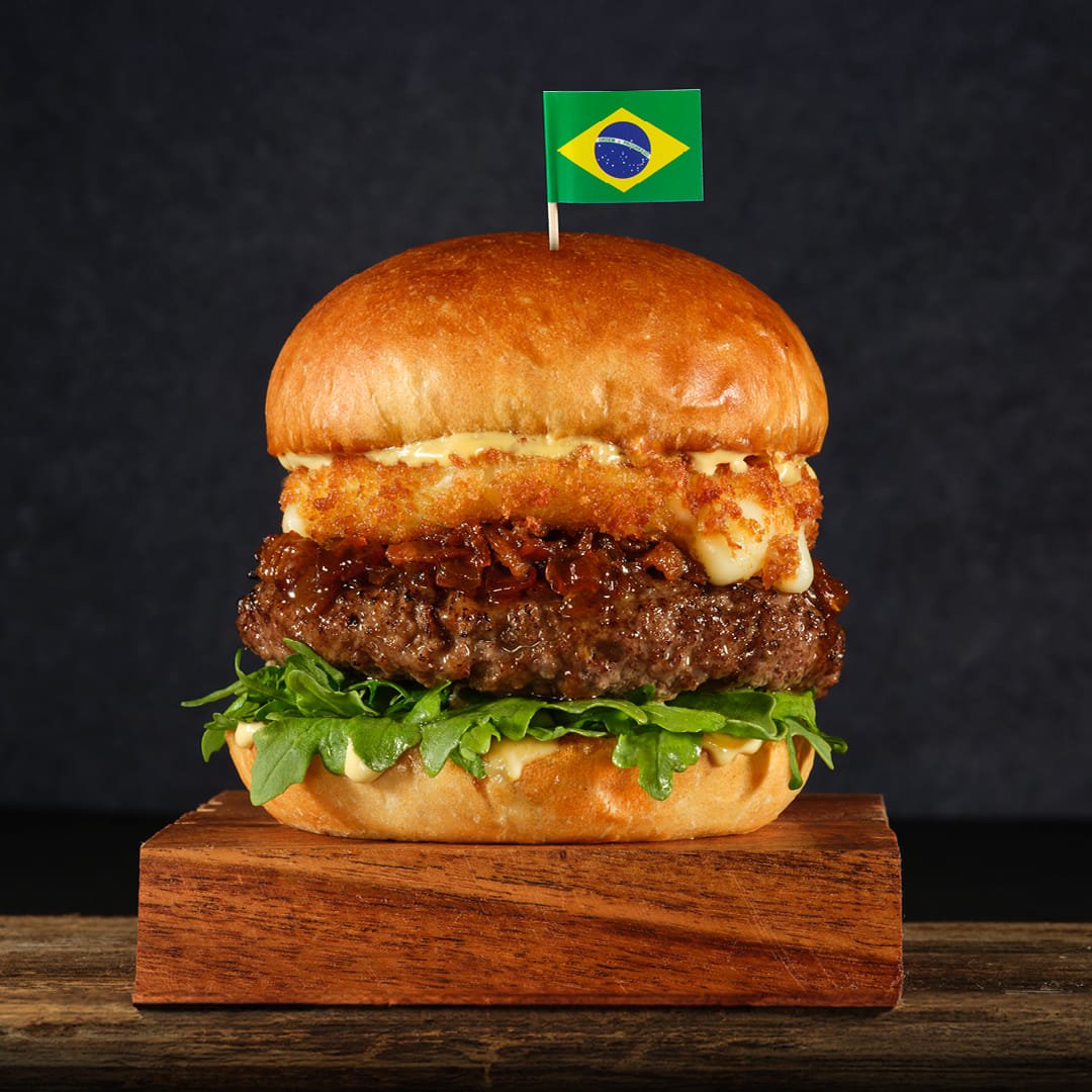 ¡La hamburguesa con la que comenzó todo! coronada con tocino ahumado, queso cheddar, un enorme aro de cebolla crujiente, lechuga y tomate.*