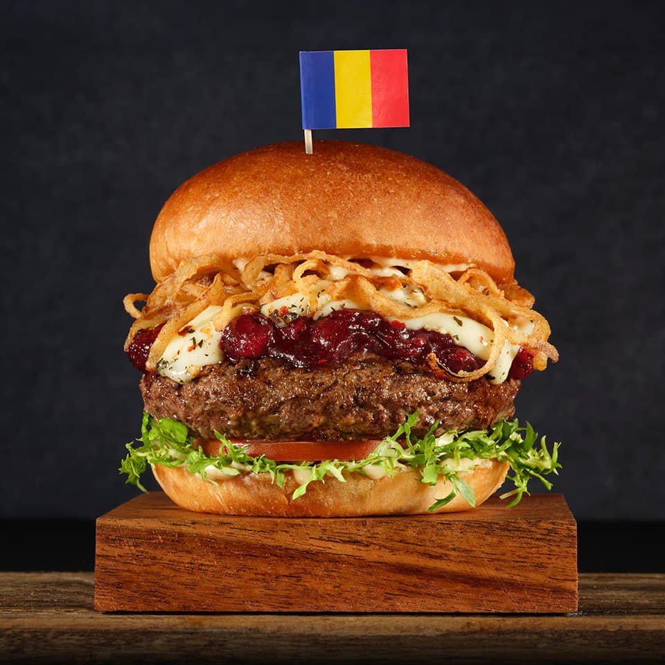 Nuestras hamburguesas se elaboran con carne de vacuno, 230 grs.(8 oz) de calidad superior. A la parrilla con el punto de carne medio-hecho (a menos que nos diga lo contrario) y servidas en un pan brioche tostado con papas fritas y salsa especial.