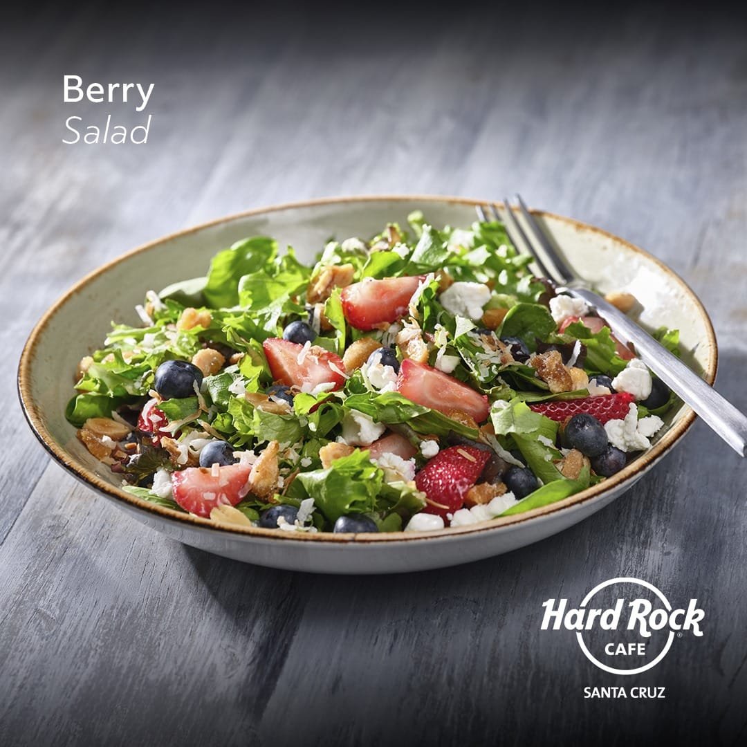 Esta ensalada original de Hard Rock Cafe, combina una variedad de lechugas frescas, zanahoria, choclo, dados de tomate, queso mixto rallado y tiritas de tortillas de maíz tostadas. Pollo túpelo o pollo a la parrilla y nueces ligeramente picantes y dulces. * Mezcladas con aderezo Ranch nueces y juliana de tortilla dorada por encima.
