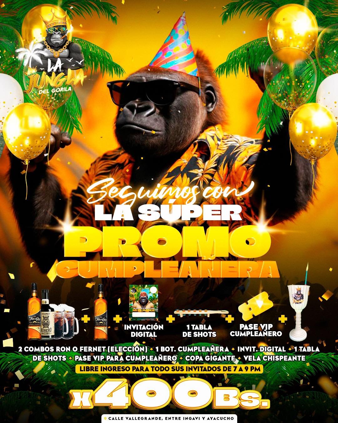 ¡Bienvenidos a La Jungla Del Gorila, tu destino de fiesta en Santa Cruz! Situados en Vallegrande #34, en la Zona Centro, somos un bar completo que combina la energía de una discoteca con la calidez de un club nocturno.