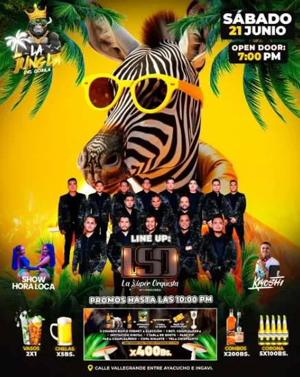 Ya sea que vengas a disfrutar de una noche de baile, a relajarte con amigos en nuestra zona lounge, o a celebrar un evento especial, nuestro equipo está aquí para garantizar que cada momento sea único. La jungla se llena de vida con música en vivo y DJs que saben cómo mantener la fiesta en movimiento.