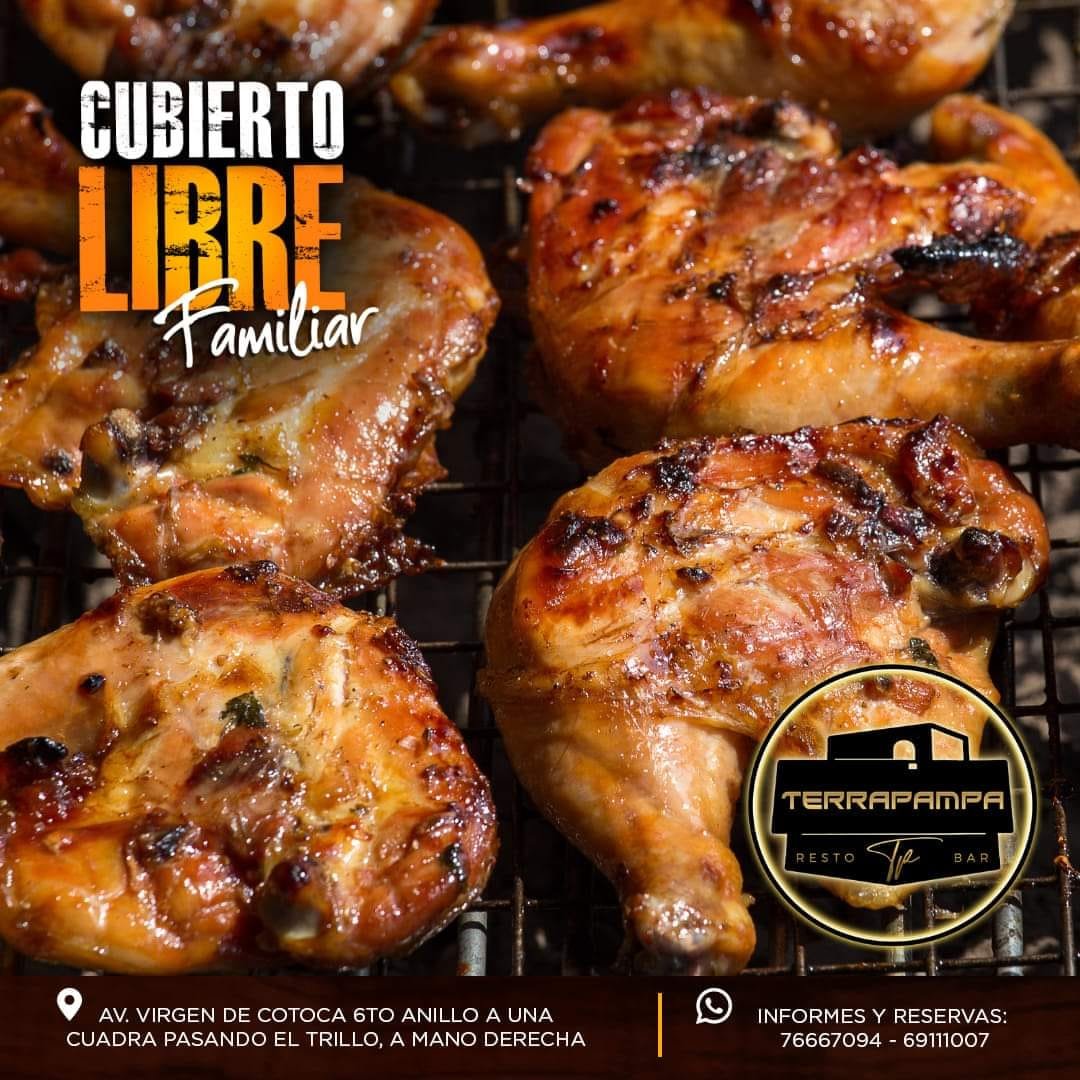 ¡Bienvenidos a Terra Pampa Resto Bar, el lugar donde la tradición y el sabor se fusionan para ofrecerte una experiencia única en Santa Cruz! Ubicados en Av. Virgen de Cotoca, pasando El Trillo y a solo una cuadra a mano derecha, te invitamos a disfrutar de una deliciosa gastronomía típica en un ambiente acogedor y relajante.